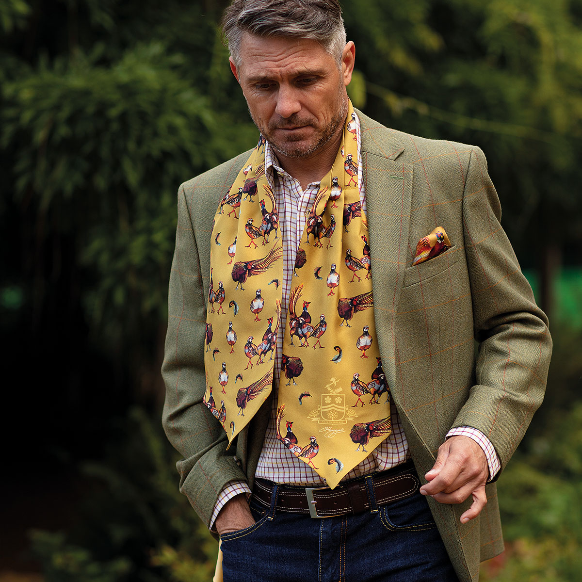 Pheasant Silk Shooting Cravat | Made in England | Gifts | Clare Haggas