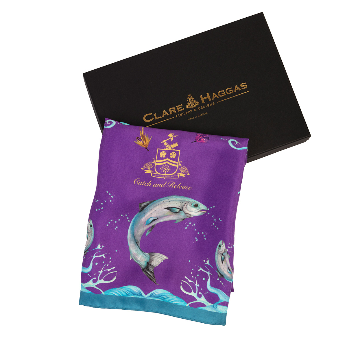 Catch and Release Salmon Fishing Silk Scarves | Clare Haggas