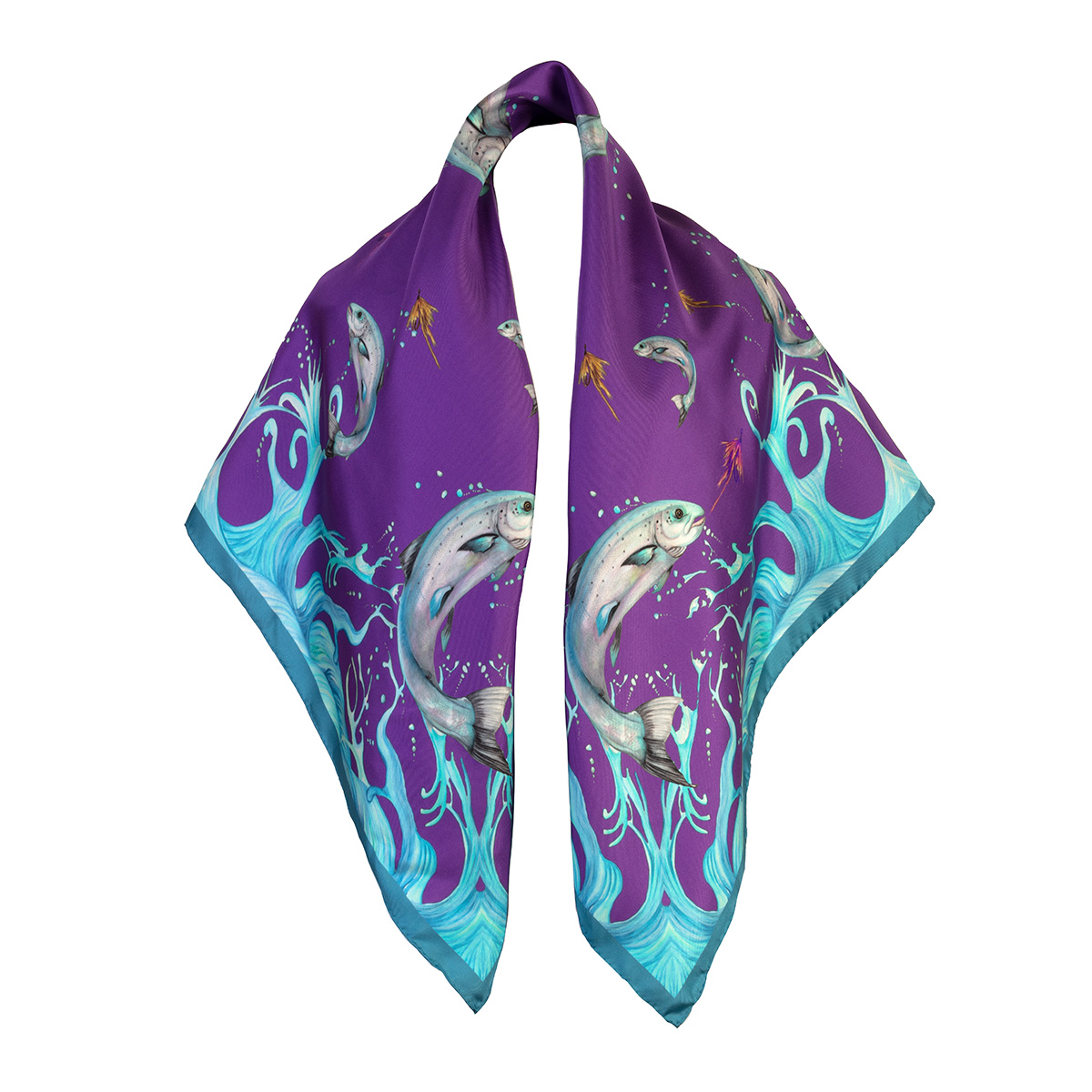 Catch and Release Salmon Fishing Silk Scarves | Clare Haggas