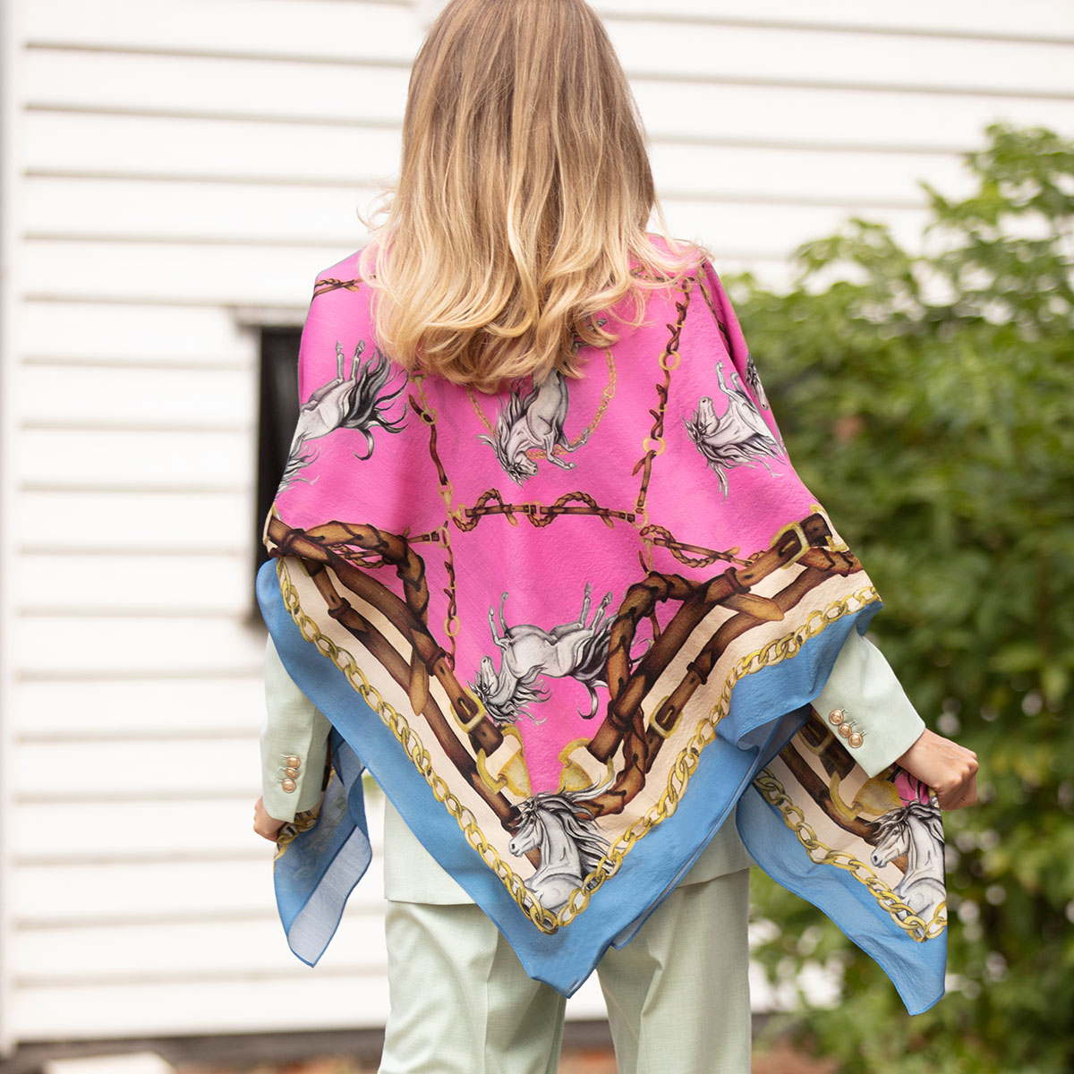 The wait is over, I now have an equestrian design that features not only my own palomino pony, but also set on jewel like teal with that pop or burnt orange. It is Clare’s most opulent design yet