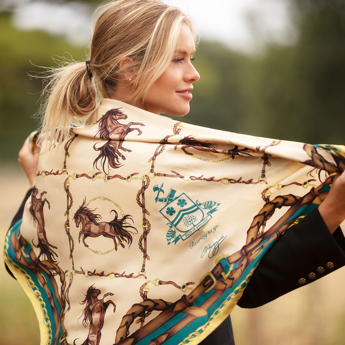 Rearing To Go Equestrian Silk Scarf | Clare Haggas