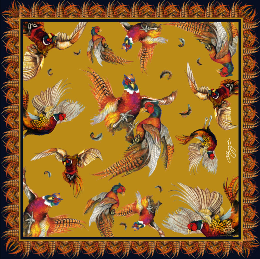 Turf War Silk Pheasant Silk Scarf | Made in England | Clare Haggas